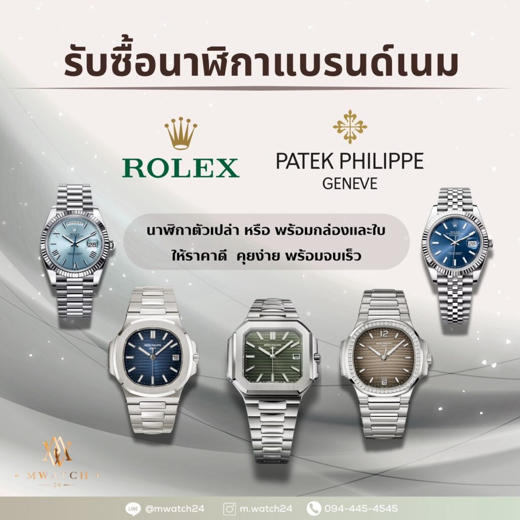 ซื้อ–ขายนาฬิกาแบรนด์ดังทุกชนิด เช่น Rolex, RICHARD MILLE, Patek Philippe, Audemars Piguet, Omega, Cartier และอีกหลายแบรนด์